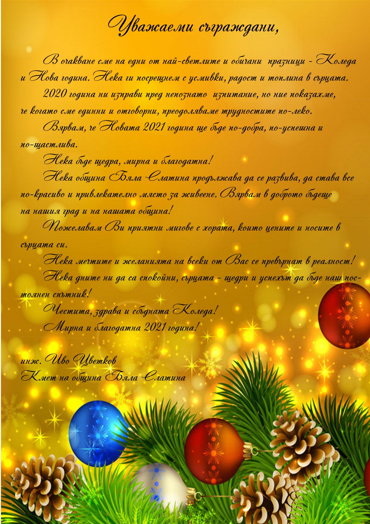 Поздрав на инж. Иво Цветков
